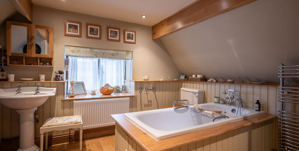 Beyond sits a dining room, again with inglenook fireplace and beams, a perfect place to host dinner-parties or enjoy an evening with family and friends. The kitchen is also generous in size, and offers enough space for a country-style dining table, perhaps for a more informal meal with family.